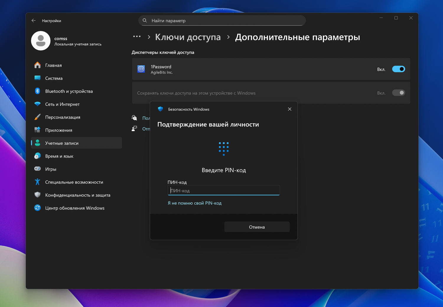 До сих пор самой непонятной частью было место хранения ключей. Windows Hello по умолчанию пытается сохранить ключ у себя, и ранее пользователям 1Password приходилось вручную переключаться на использование приложения. Теперь это решено: 1Password использует новый API для нативной интеграции с Windows 11. После активации 1Password берёт на себя управление учётными данными, позволяет создавать ключи доступа на любом устройстве, синхронизировать их и использовать Windows Hello для аутентификации.