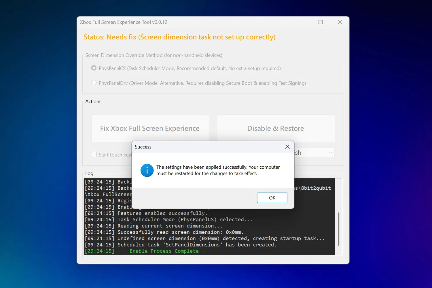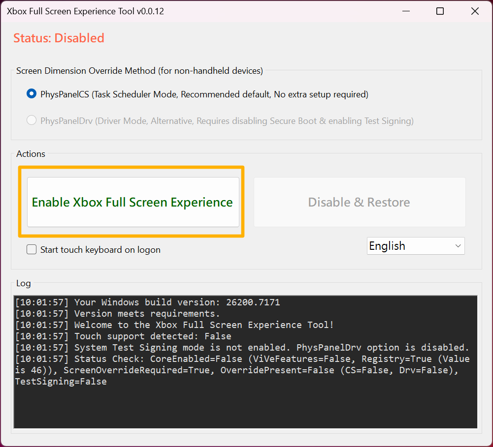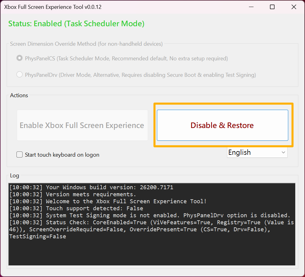 Если что-то работает не так, как задумано, вы всегда можете вернуть систему в исходное состояние, запустив Xbox Full Screen Experience Tool и выбрав опцию «Отключить и восстановить» (Disable and Restore).
