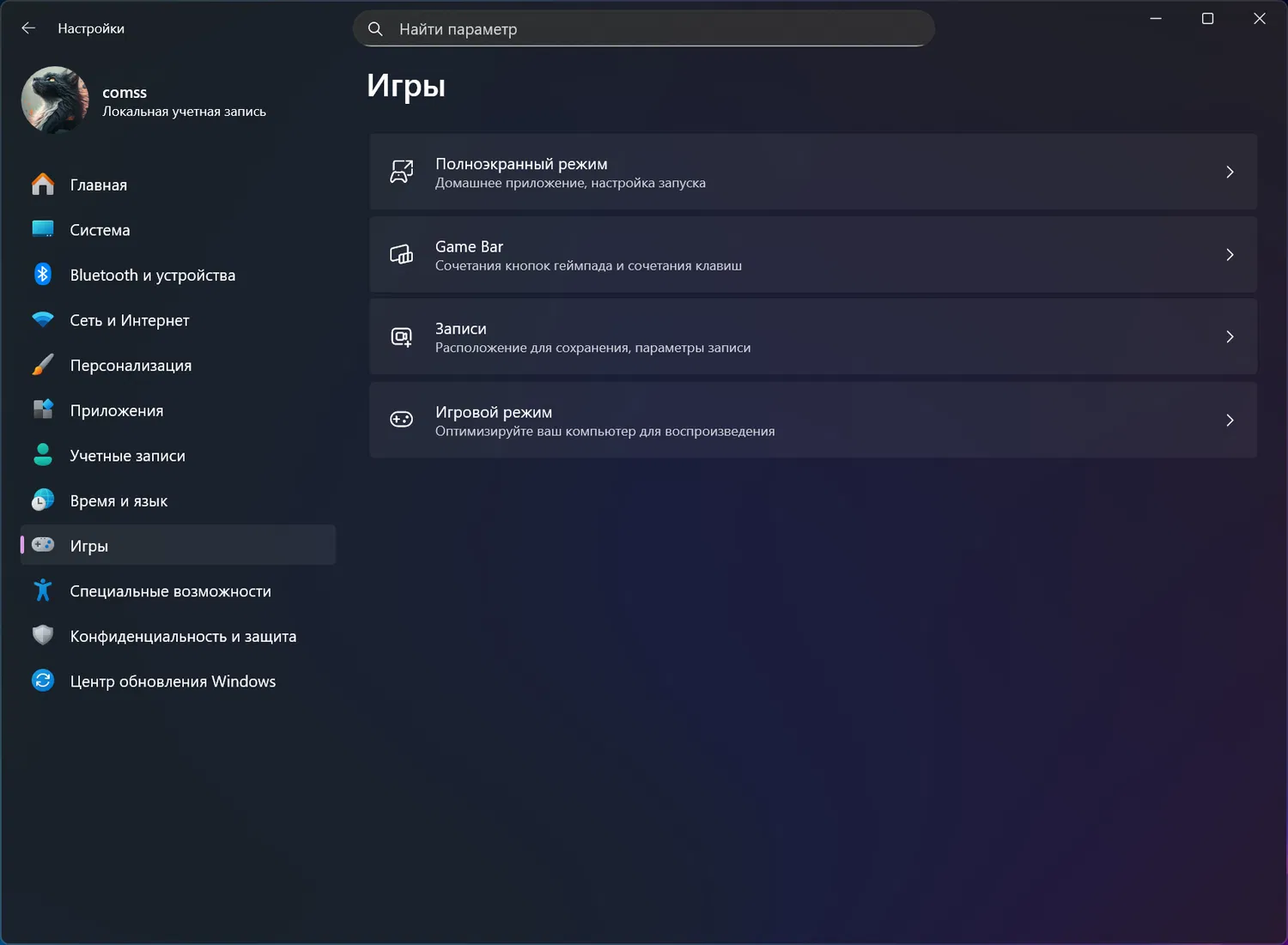 - Перейдите в меню Windows 11 Настройки > Игры > Полноэкранный режим (Full-screen experience).