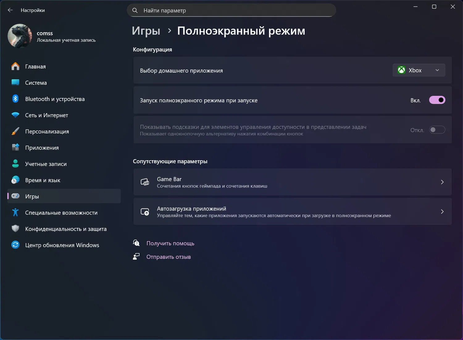 Настройка автозапуска приложений: В полноэкранном режиме Xbox Windows не запускает большинство фоновых программ при входе — это ускоряет старт системы и улучшает её отзывчивость. Для тонкой настройки откройте Настройки Windows > Приложения > Автозагрузка в режиме рабочего стола.