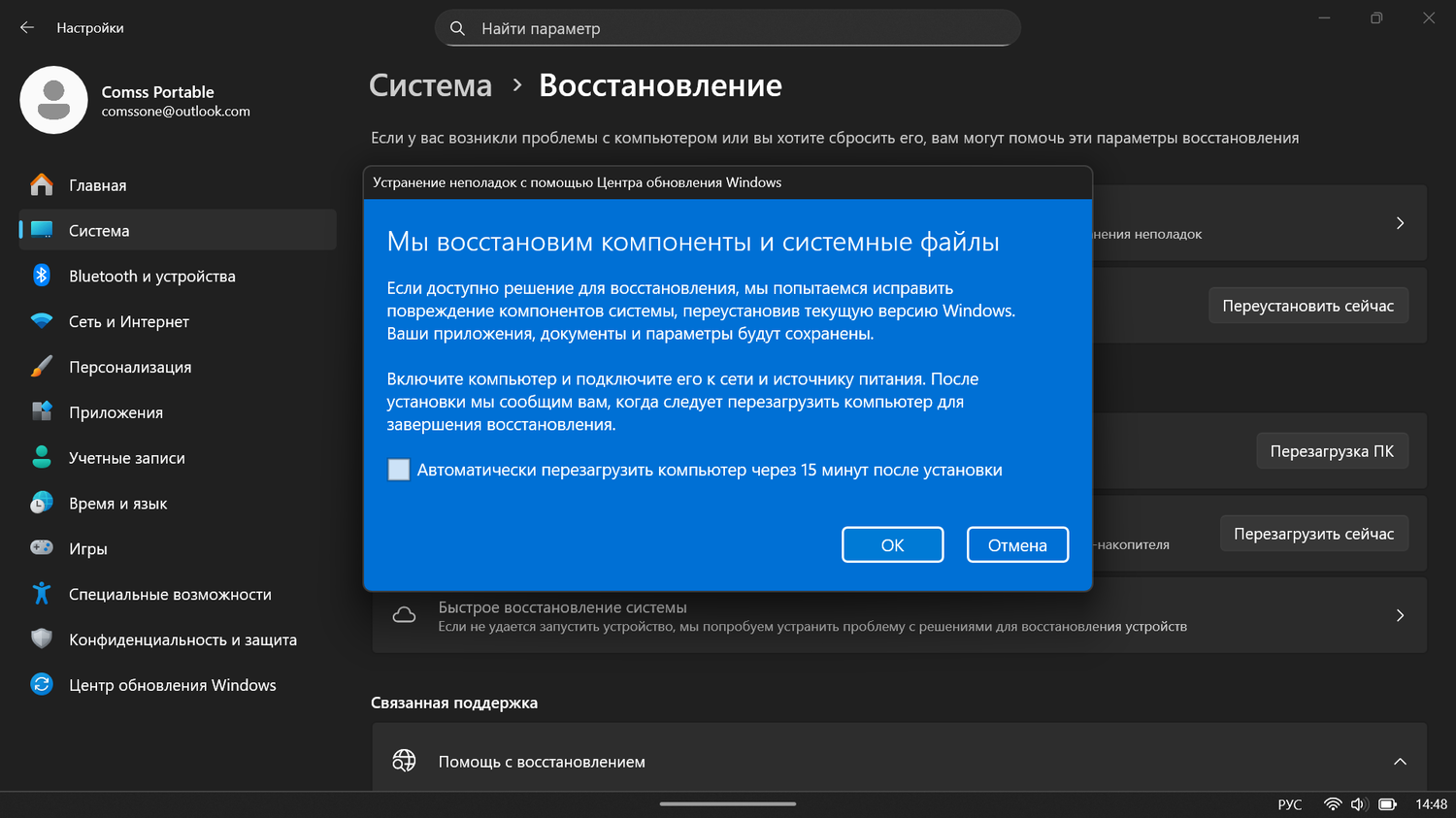 По сообщениям владельцев ROG Ally X, проблему удалось решить с помощью новой функции восстановления, встроенной в Windows 11. Она переустанавливает компоненты Центра обновления Windows и позволяет установить KB5068861 без ошибки 0x800f0991. После восстановления система заново применяет критические компоненты обновления, что позволяет продолжить установку.