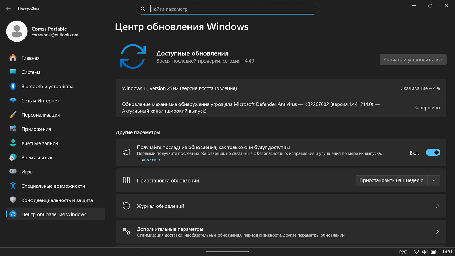 - Откройте Параметры > Центр обновления Windows.