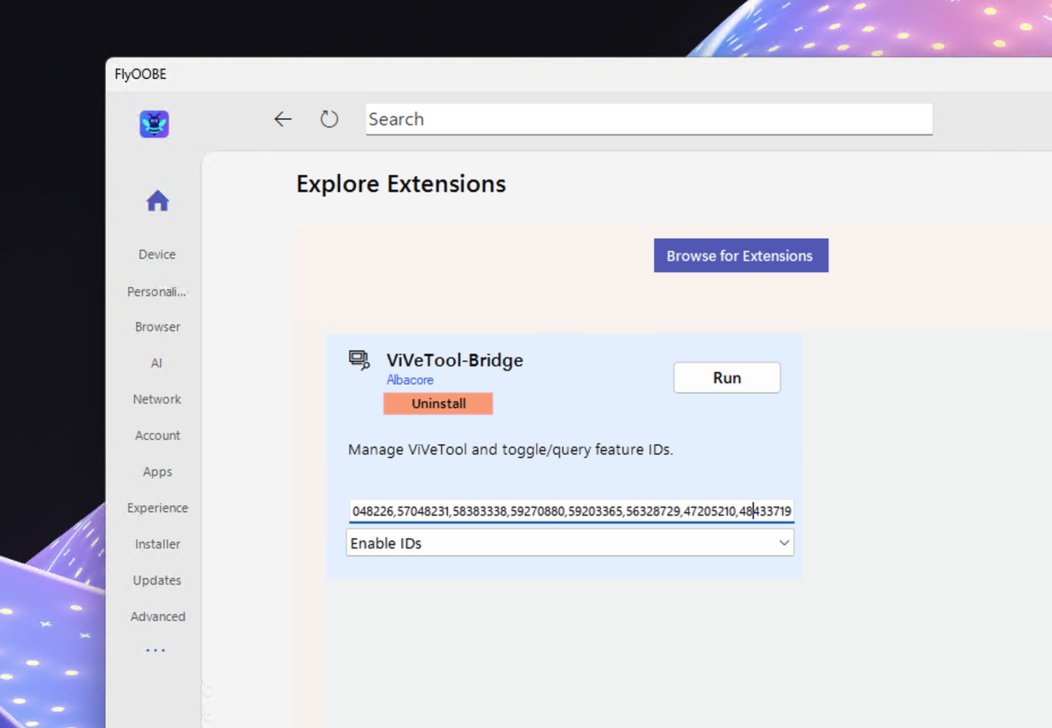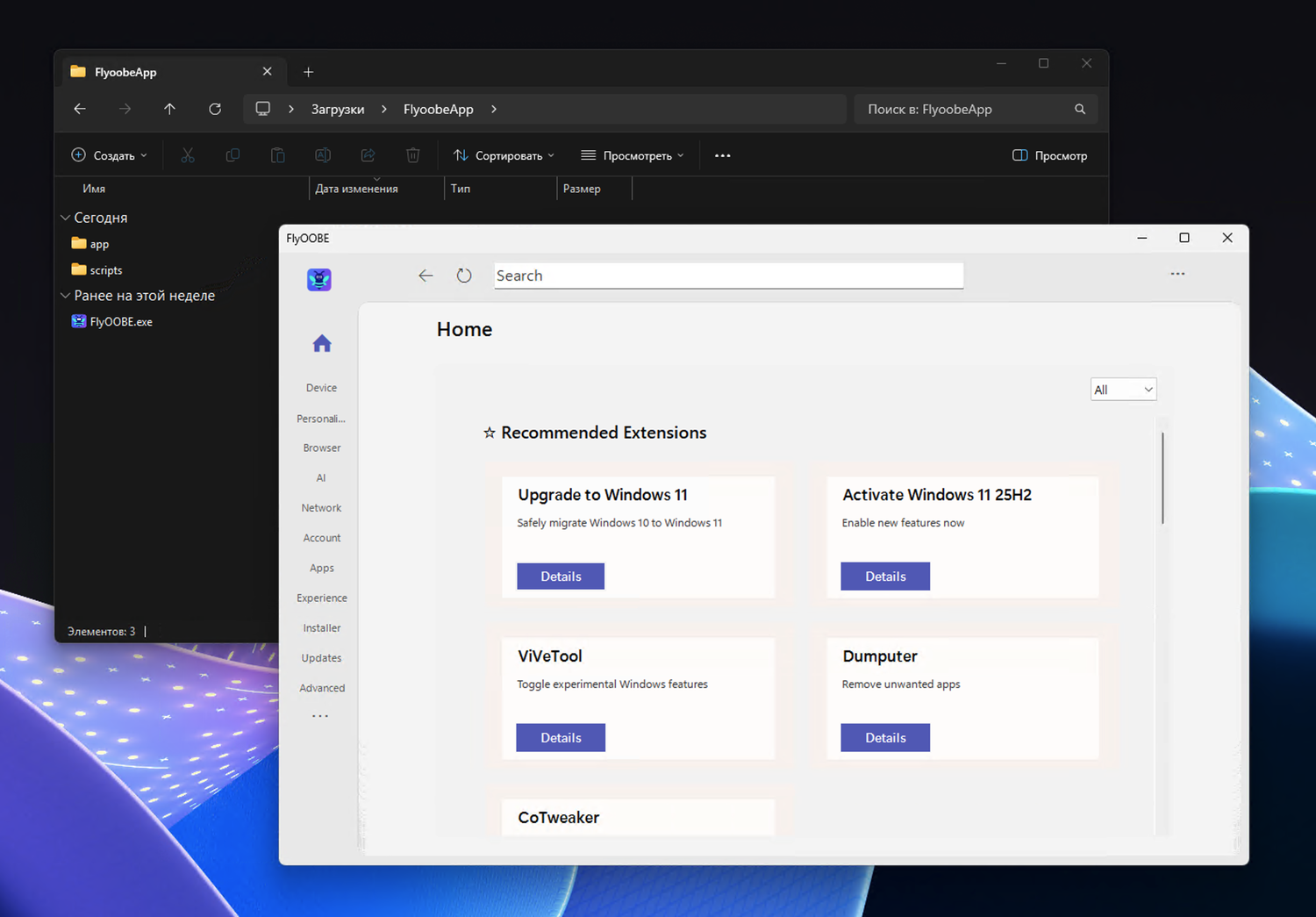 FlyOOBE — полезная программа, которая решает сразу несколько задач. Добавление поддержки включения и отключения функций через ViVeTool — ценное расширение и без того отличного приложения.