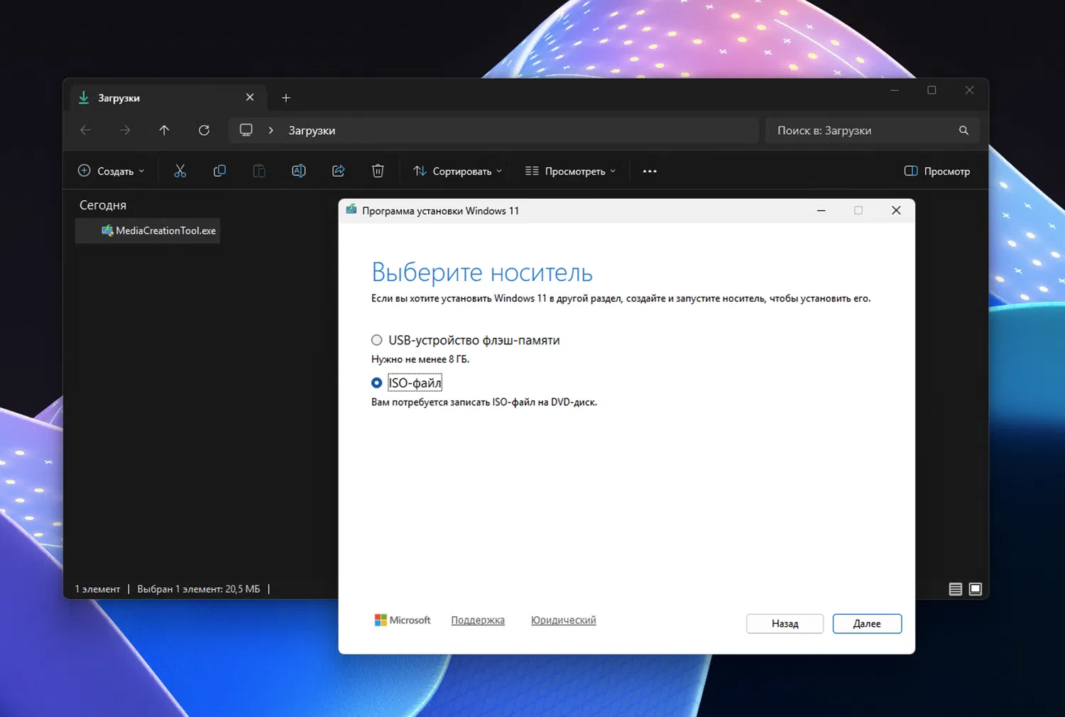 Созданный установочный носитель можно использовать для чистой установки Windows 11 25H2, обновления с Windows 10 или предыдущих сборок Windows 11, а также для восстановления системы.