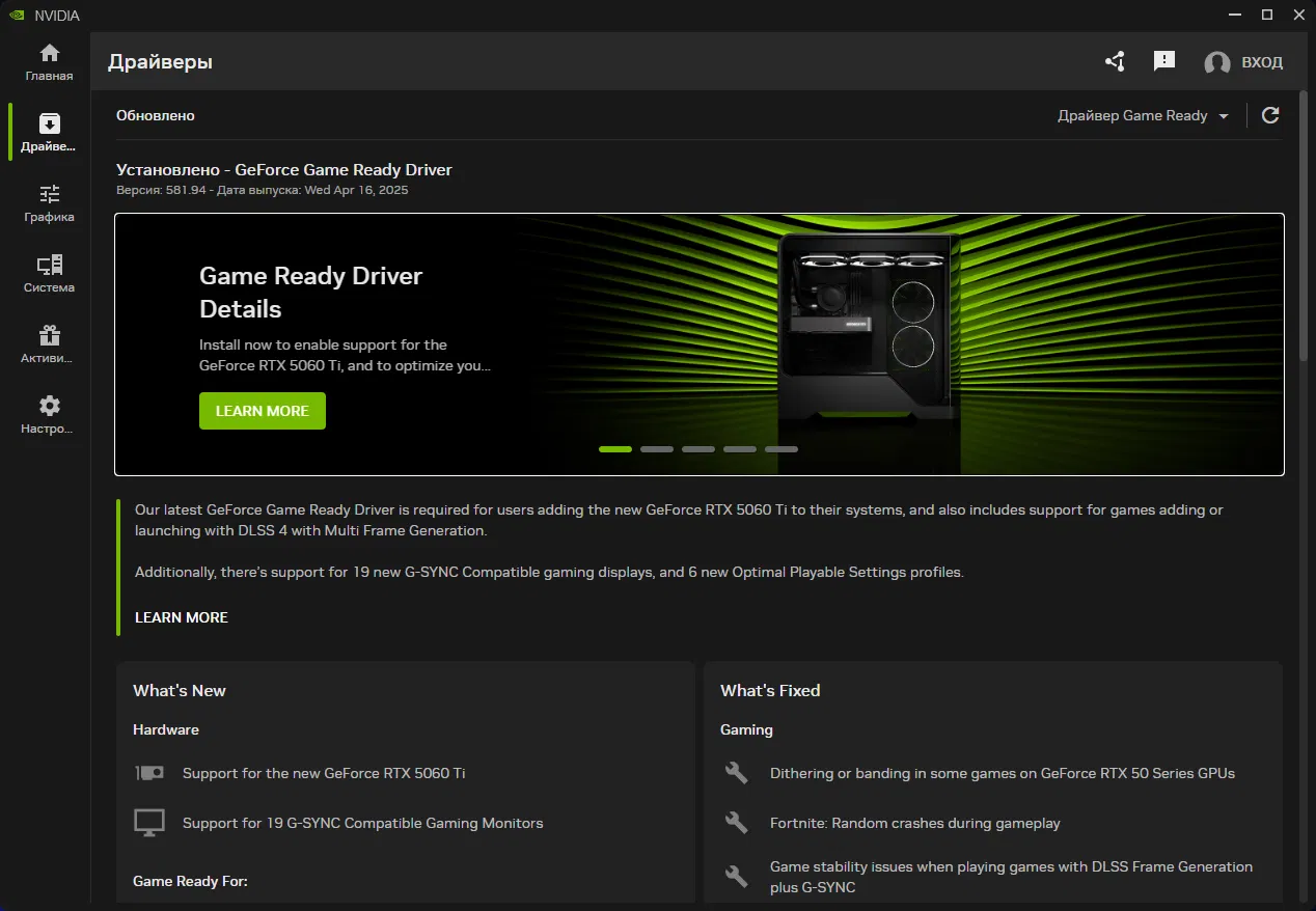 GeForce Hotfix Display Driver версии 581.94 основан на нашем последнем Game Ready Driver 581.80. Этот хотфикс исправляет следующее: