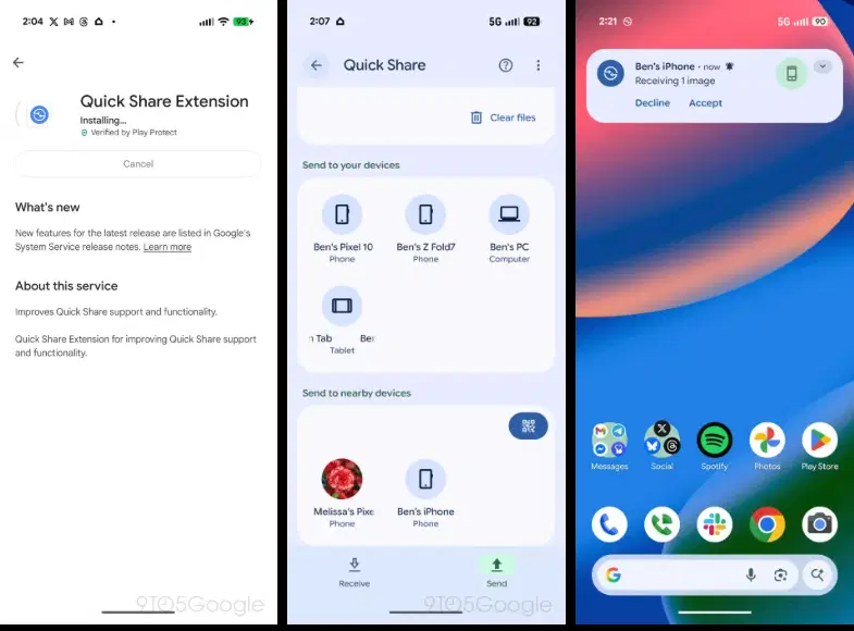 Однако на данном этапе развертывание ограничено новейшими смартфонами Google Pixel 10. Попытка установки обновления Quick Share Extension на Samsung Galaxy Z Fold 7 не дала результатов: устройство не обнаруживает iPhone, а iPhone не видит смартфон Samsung. Аналогичная ситуация наблюдается и с версией Quick Share для Windows.
