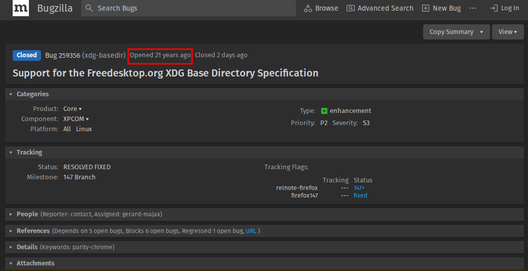 Изменение знаменует собой завершение работы над одним из наиболее длительных вопросов, связанных с браузером. Ошибка под номером 259356 была впервые зарегистрирована в 2003 году, и запрос о поддержке каталогов XDG многократно поднимался пользователями Linux и дистрибутивами на протяжении всех этих лет. Окончательно вопрос был закрыт в 2025 году.