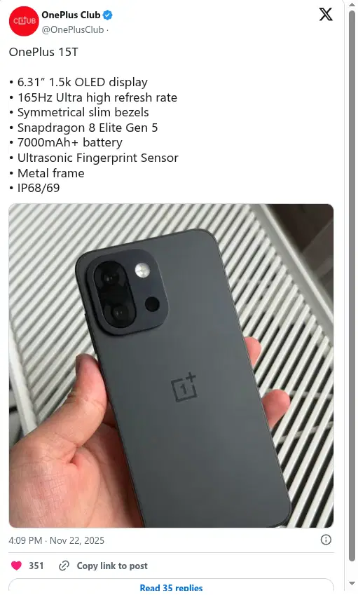 Примечательно, что Ace 6T - не единственный телефон с индексом T, находящийся в разработке. Появились предварительные сведения о грядущем флагмане, ориентированном на высокую производительность - OnePlus 15T. Свежая утечка данных проливает свет на техническое оснащение гаджета.