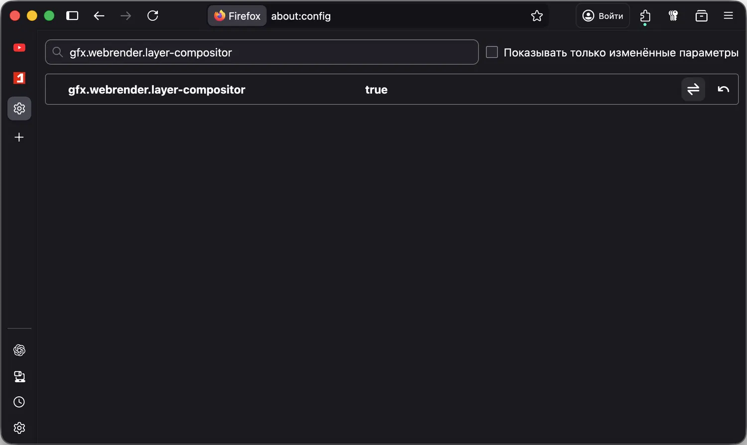 - Найдите параметр gfx.webrender.layer-compositor.
