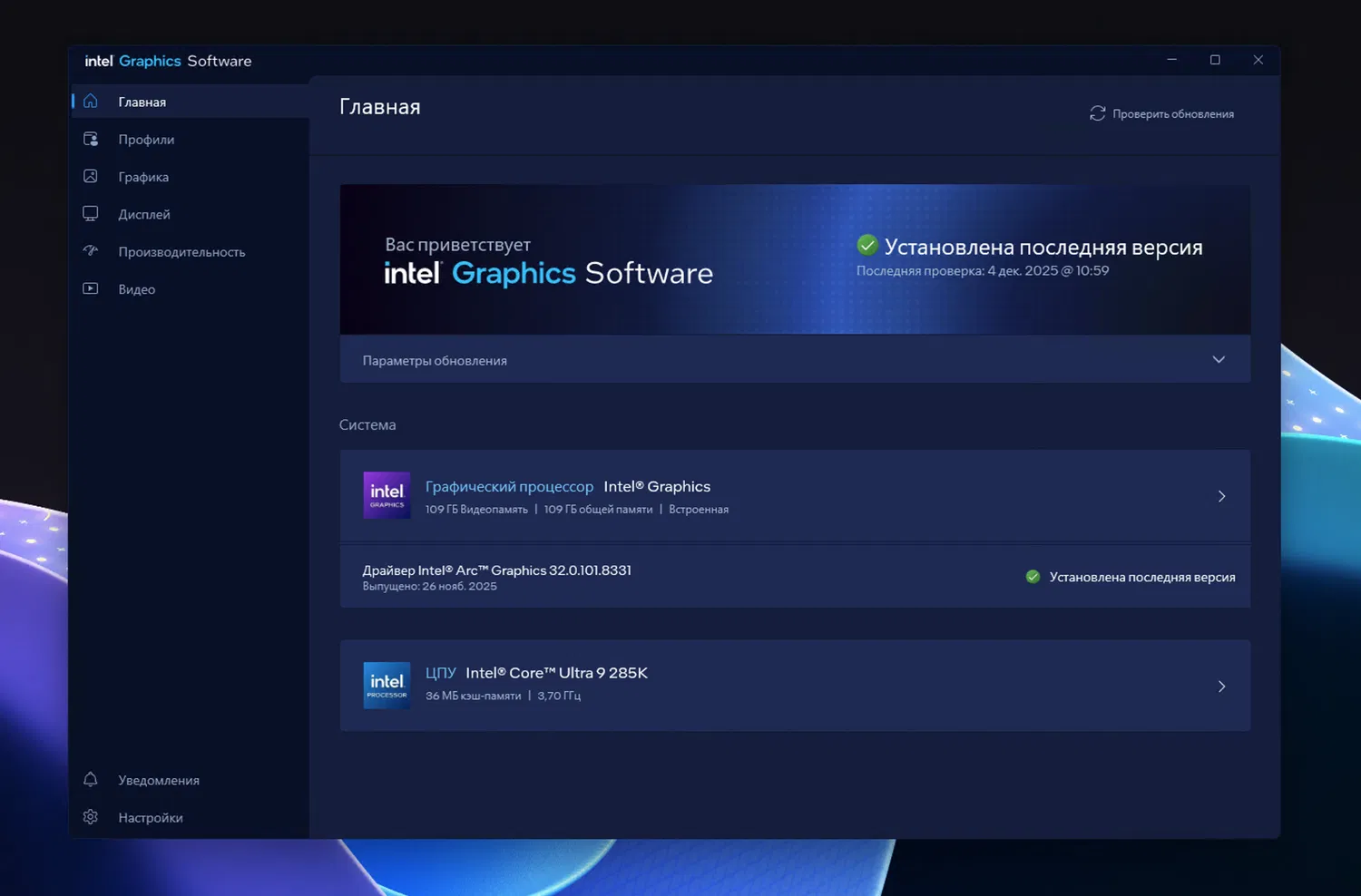 Обновление Intel Arc Graphics Driver версии 32.0.101.8331 WHQL доступно для скачивания через Intel Graphics Software, Intel Driver & Support Assistant или с официального сайта Intel.com