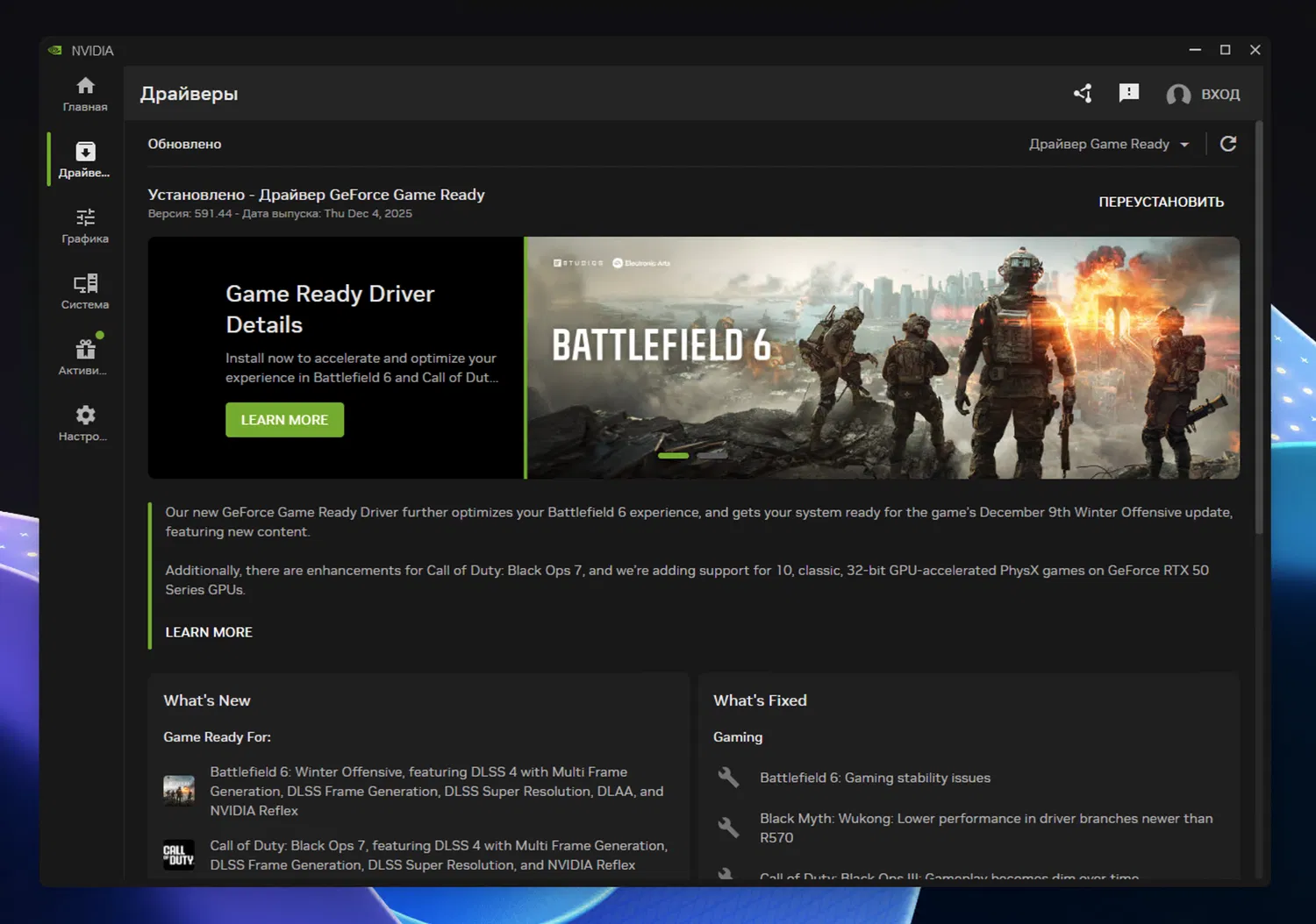 Что нового в NVIDIA GeForce Game Ready 591.44 WHQL