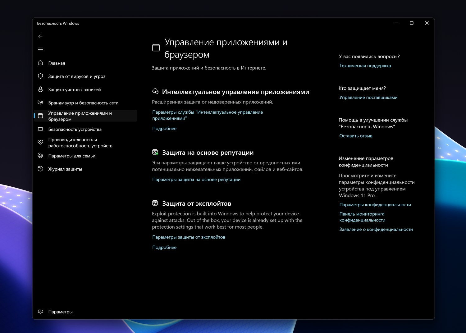 Мы обновляем Smart App Control (SAC), чтобы вы могли включать и выключать SAC без необходимости чистой установки. Для изменения параметров перейдите в Безопасность Windows > Управление приложениями и браузером > Параметры службы "Интеллектуальное управление приложениями". Когда SAC включен, он помогает блокировать ненадежные или потенциально вредоносные приложения.