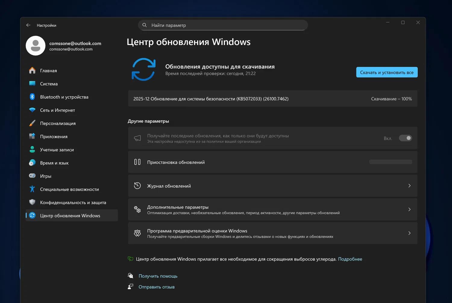 Как установить обновление KB5072033 вручную