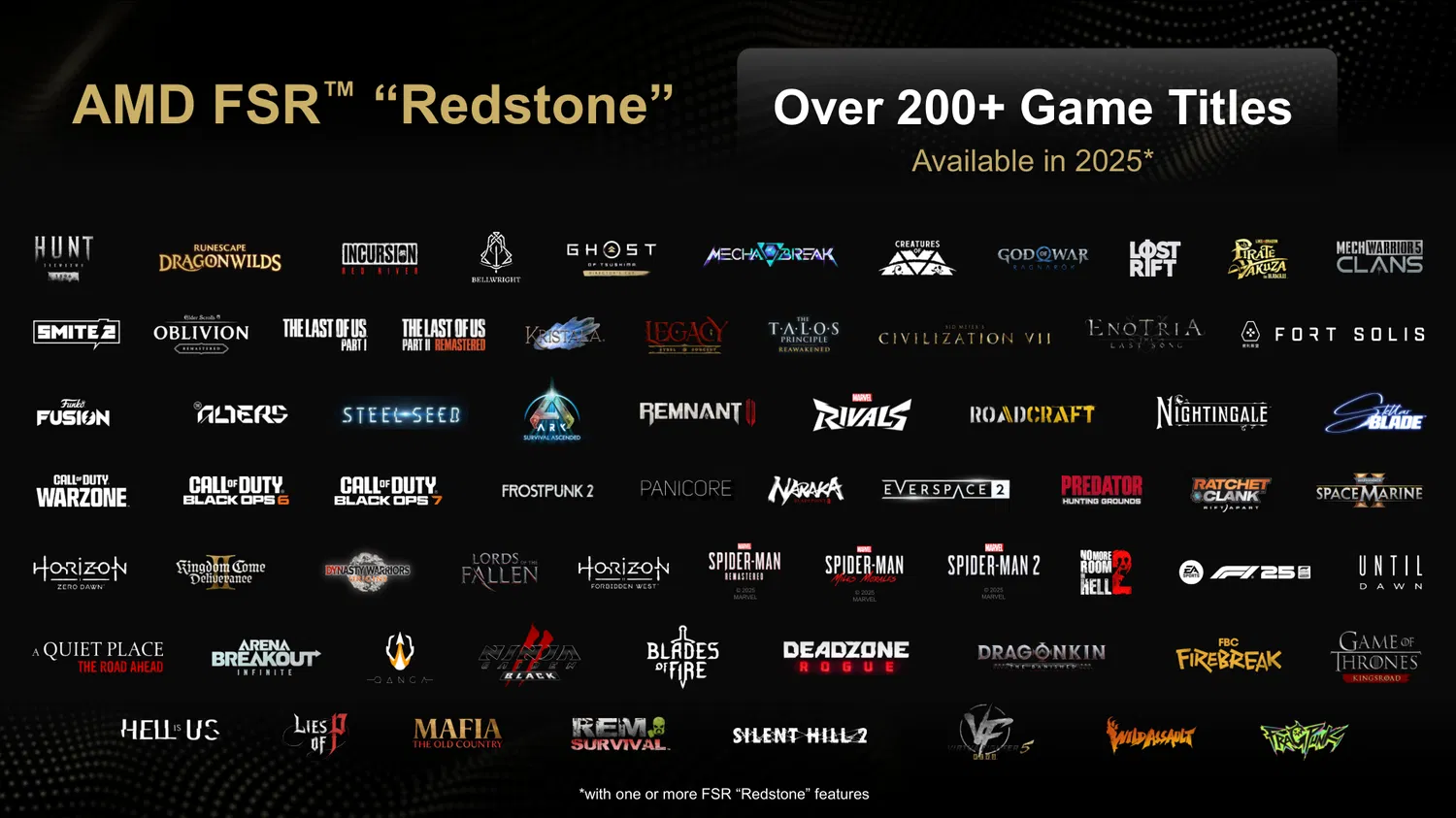AMD подчёркивает, что FSR Redstone работает исключительно на видеокартах серии Radeon RX 9000 и доступен только в играх, которые ранее поддерживали FSR 3.1, полностью заменяя его. Компания ожидает, что до конца года более 200 проектов получат поддержку FSR Redstone. Экосистема продолжит расширяться: например, Warhammer 40,000: Darktide планирует внедрить Radiance Caching в следующем году.