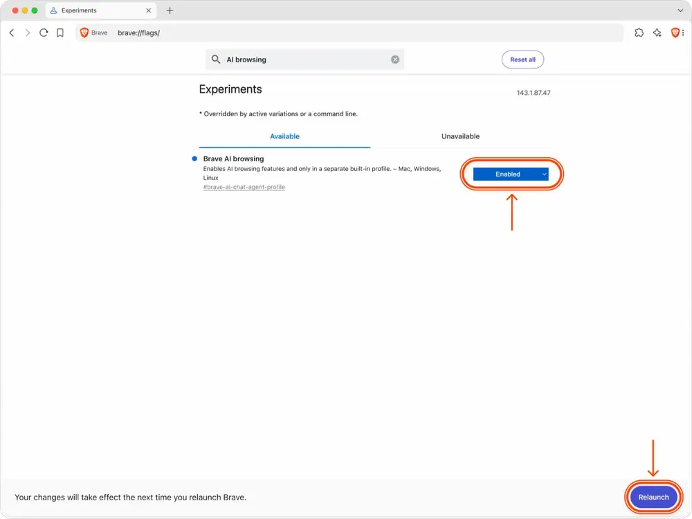 Протестировать новый агентный ИИ-режим Brave пока можно только в версии Brave Nightly, предварительно включив флаг Brave’s AI browsing на странице brave://flags.