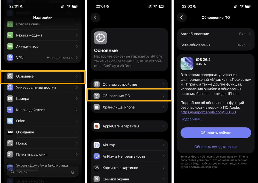 iOS 26.2 также включает обновления безопасности и системные улучшения. Подробная информация доступна на сайте Apple: