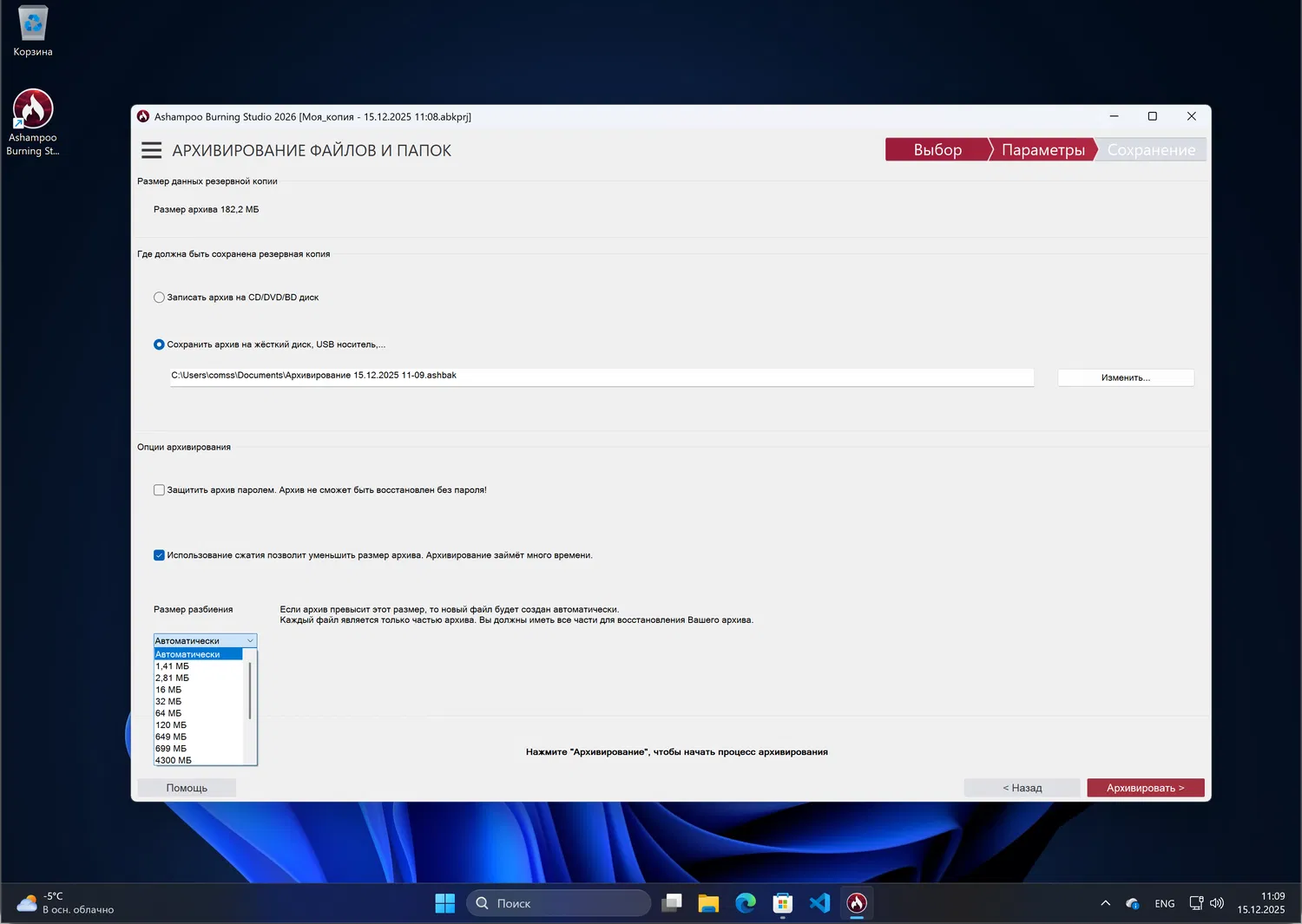 Ashampoo Burning Studio 2026 также ориентирована на задачи резервного копирования. Программа позволяет создавать резервные копии данных на CD, DVD, Blu-ray, USB-накопители и внешние жёсткие диски. Копирование данных со смартфонов, планшетов и флешек выполняется буквально в один клик, что делает решение удобным для пользователей без технической подготовки. При нехватке места на одном носителе функция автоматического распределения по дискам разбивает архив на несколько частей, упрощая хранение и восстановление больших коллекций данных.