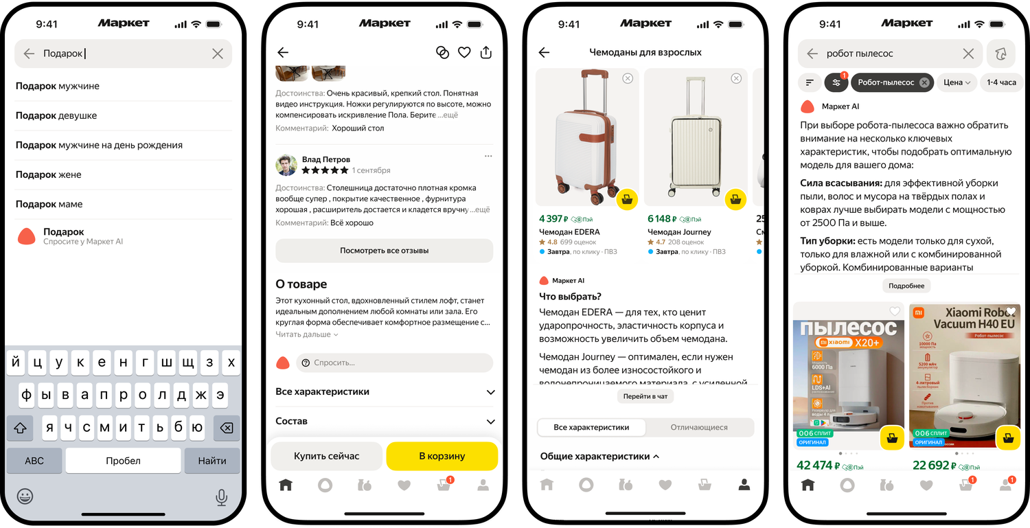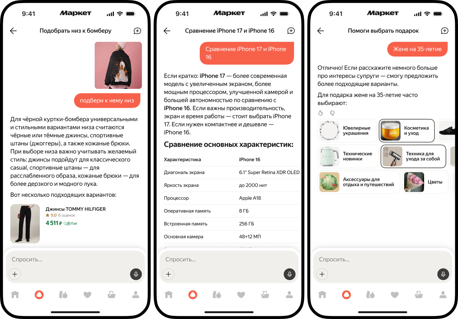 Весной 2025 года Яндекс Маркет первым среди российских маркетплейсов запустил чат с ИИ для покупателей, а в ноябре функциональность агента была расширена. Сегодня ИИ-агент Маркет AI работает как персональный консультант и помогает с выбором самых разных товаров — от одежды до бытовой техники. Он: