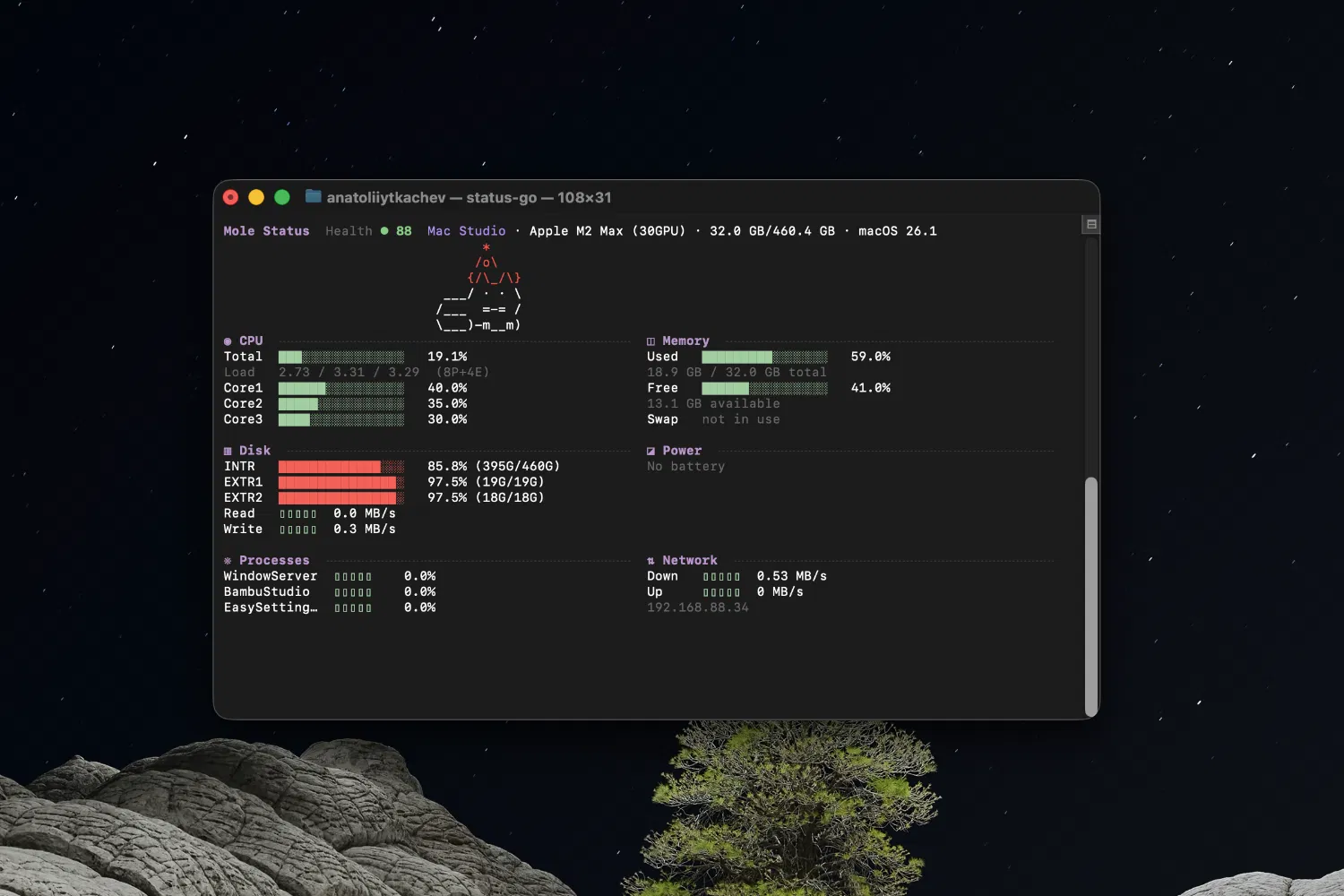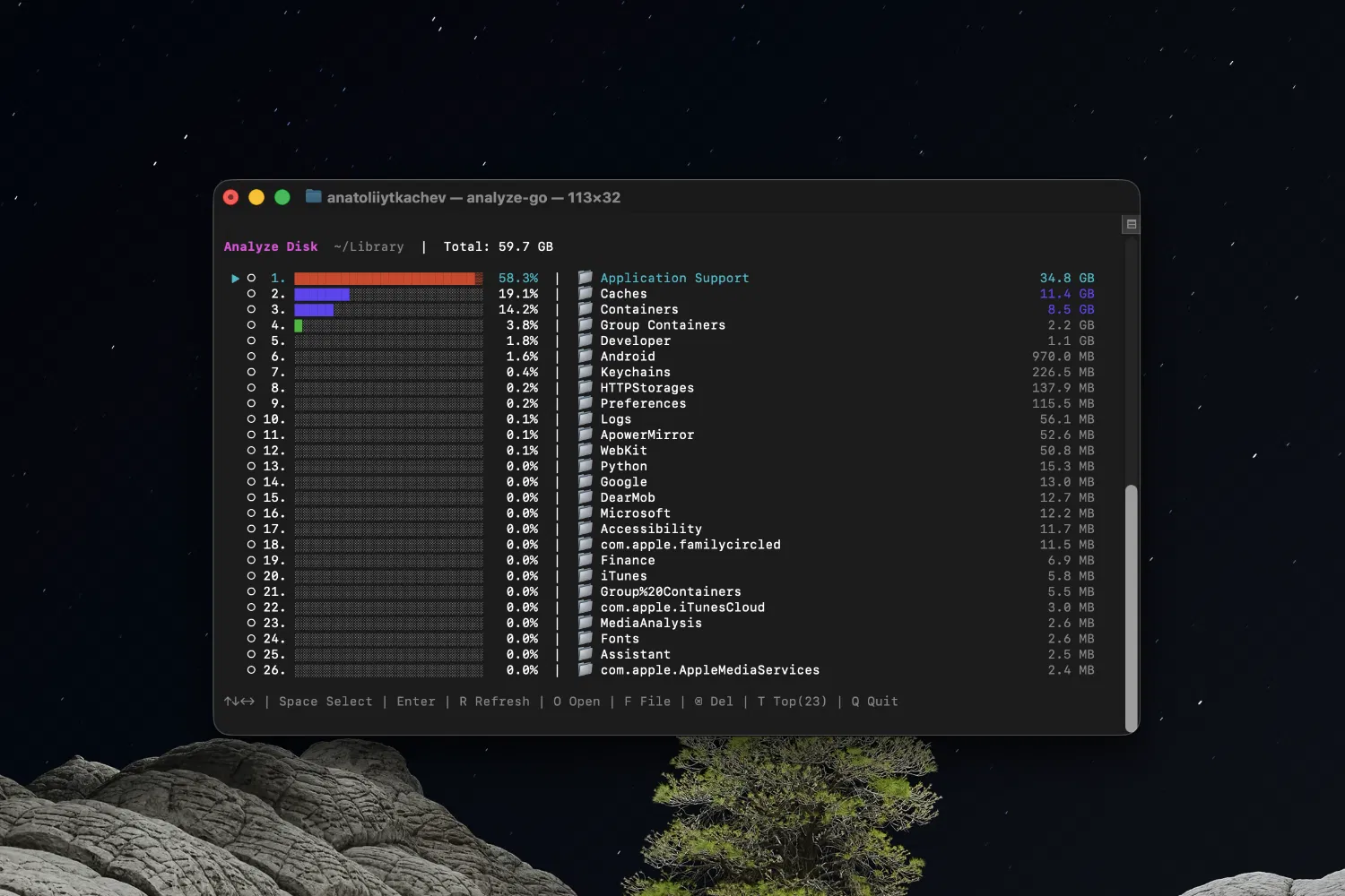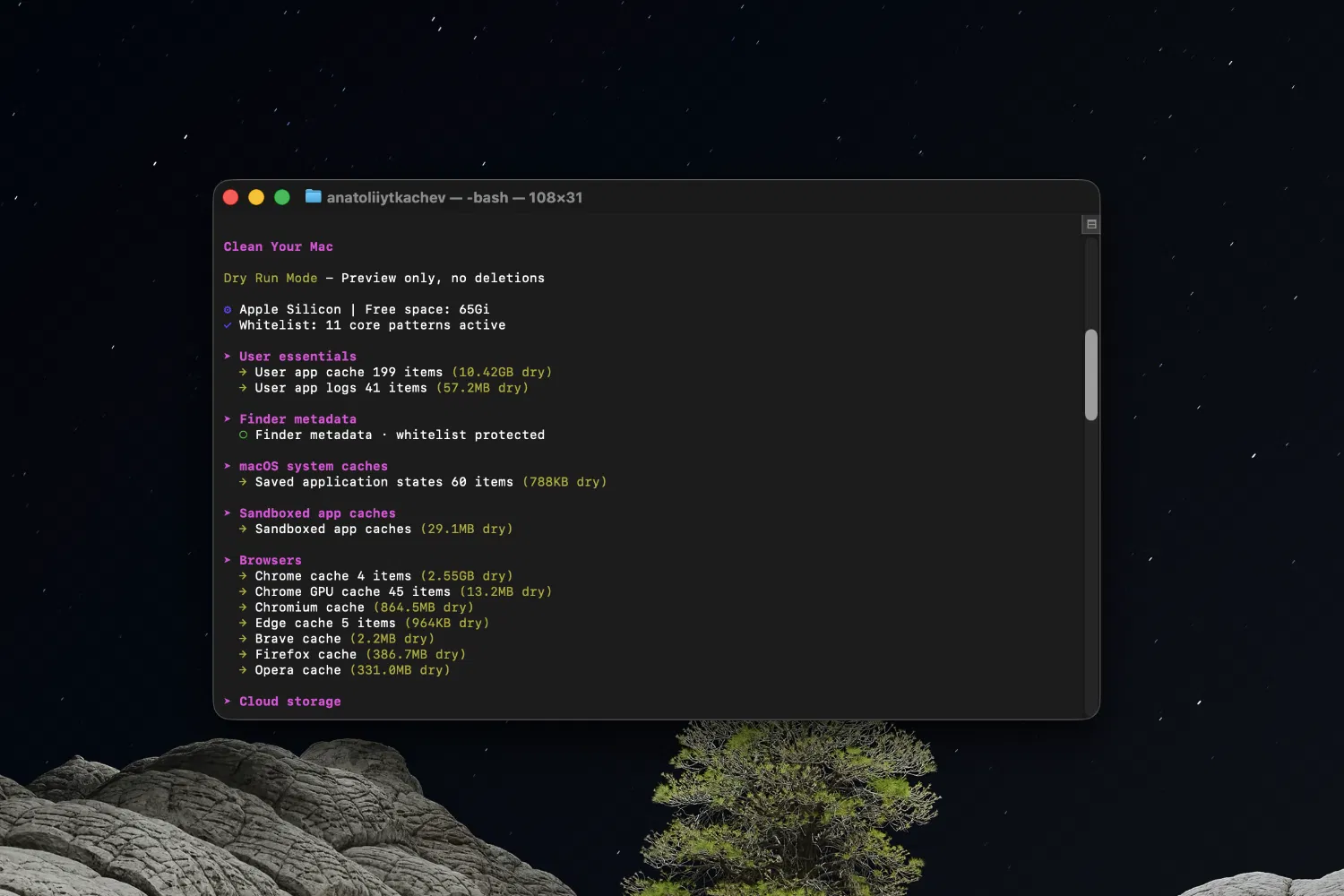 Mole предлагает иной подход. Это лёгкая утилита командной строки, которая позволяет вручную анализировать систему, выполнять очистку и оптимизацию, а главное — понимать, что именно происходит на каждом этапе.