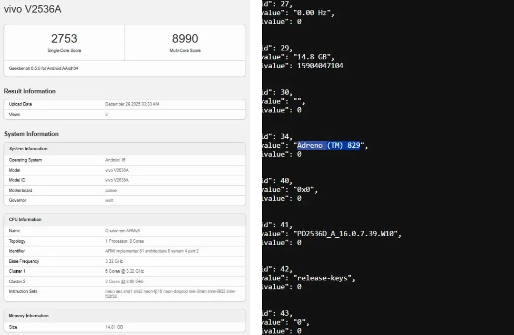 В базе данных Geekbench появилось устройство Vivo с модельным номером V2536A. Анализ параметров центрального и графического процессоров указывает на применение чипсета Snapdragon 8 Gen 5. Ранее производитель подтвердил, что iQOO Z11 Turbo будет базироваться именно на этой платформе, что позволяет однозначно идентифицировать модель V2536A как грядущую новинку серии Z.