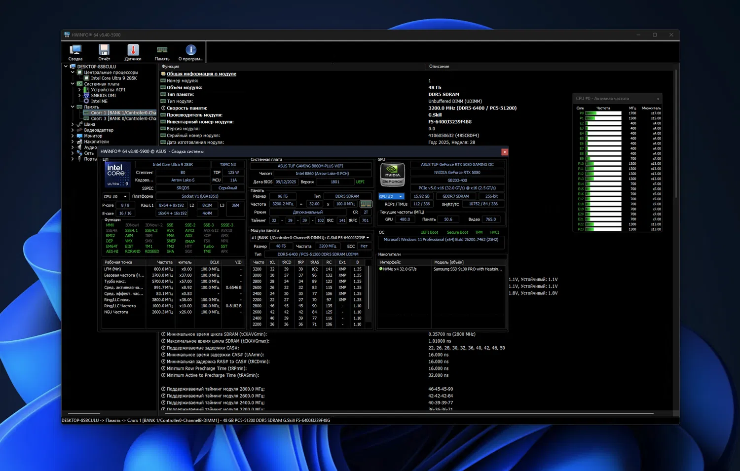 HWiNFO (Hardware Information) — это универсальный инструмент для получения подробной информации о железе и контроля ключевых параметров системы в реальном времени. Утилита показывает данные по процессору, видеокарте, памяти, накопителям и материнской плате, а также выводит показатели датчиков: температуры, напряжения, частоты, потребления и скорости вентиляторов.