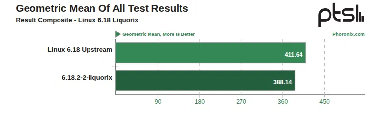 В общей сложности было проведено 164 теста производительности. По суммарным показателям стандартное ядро Linux 6.18 LTS оказалось быстрее модифицированной версии. Несмотря на общее лидерство ванильного ядра, Liquorix продемонстрировал лучшие результаты в специфических сценариях на платформе Zen 5.