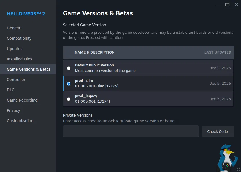 В Steam Client Beta был переработан раздел Свойства приложения > Бета-версии. Новый интерфейс стал более наглядным и удобным, особенно для игр с несколькими доступными ветками. Это упрощает переключение между версиями и снижает вероятность ошибок при выборе нужной сборки.
