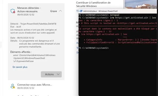 Согласно сообщениям в социальных сетях и на форумах, при запуске оригинального PowerShell-скрипта Microsoft Defender может отображать предупреждение: