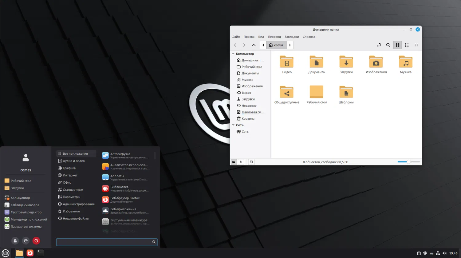 Ключевым событием релиза стала интеграция Cinnamon 6.6. В этой версии графической оболочки существенно переработали меню приложений. Теперь оно включает боковую панель во всю высоту для быстрого доступа к профилю пользователя, символьные иконки категорий и гибкие настройки макета. Также расширена поддержка разделов Места и закладок.