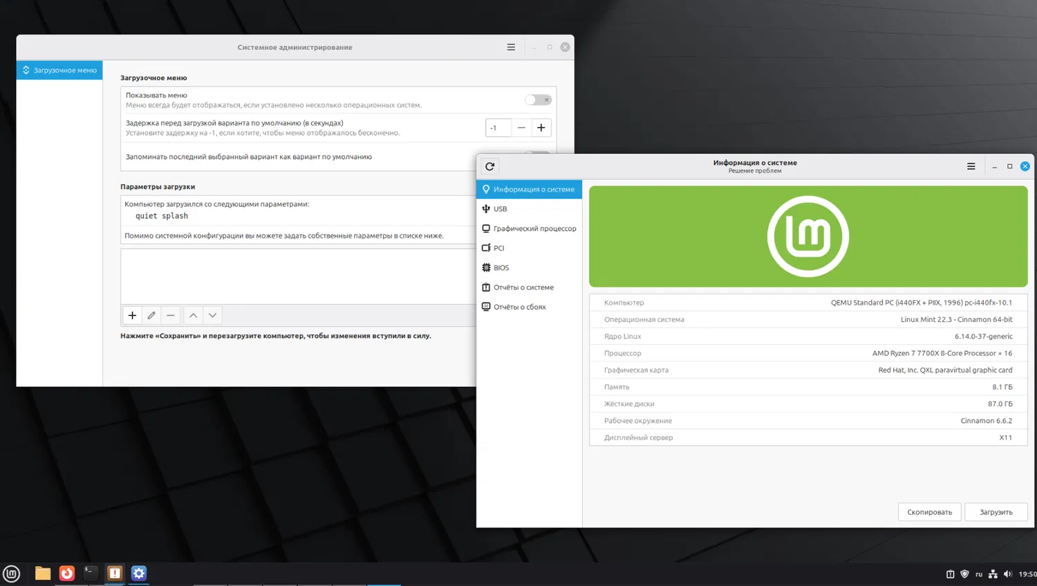 Состав дистрибутива пополнился двумя новыми приложениями для настройки и диагностики. Утилита Информация о системе собирает подробные отчеты об аппаратных характеристиках и установленных драйверах. Приложение Системное администрирование предназначено для управления параметрами на уровне ОС, включая конфигурацию загрузчика.