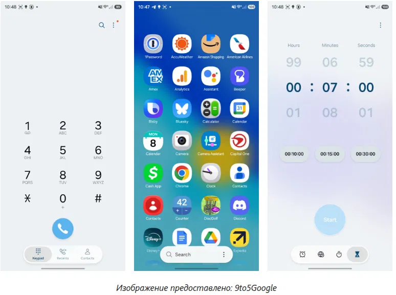 В визуальной части произошли заметные изменения. Значки фирменных приложений Samsung получили легкий 3D-эффект. Дизайн системы дополнен элементами в стиле Liquid Glass: парящими деталями, мягкими тенями и эффектом матового стекла. Samsung реализовала собственную концепцию глубины интерфейса, которая придает системе более современный и утонченный вид.