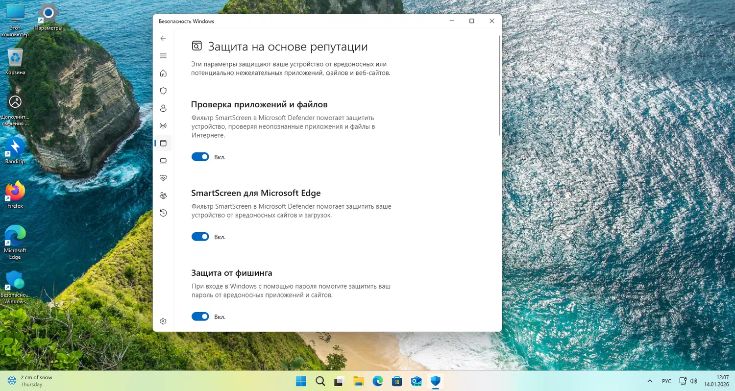 В состав Windows 11 включены продвинутые механизмы защиты. Система безопасности Windows использует машинное обучение для обнаружения угроз, обеспечивает сканирование в реальном времени и интегрирована с фильтром SmartScreen для предотвращения фишинга. Дополнительные уровни безопасности обеспечиваются за счет функций Secure Boot, защиты на базе виртуализации и строгих прав доступа пользователей. При правильной настройке компьютер остается защищенным даже без использования сторонних антивирусов.