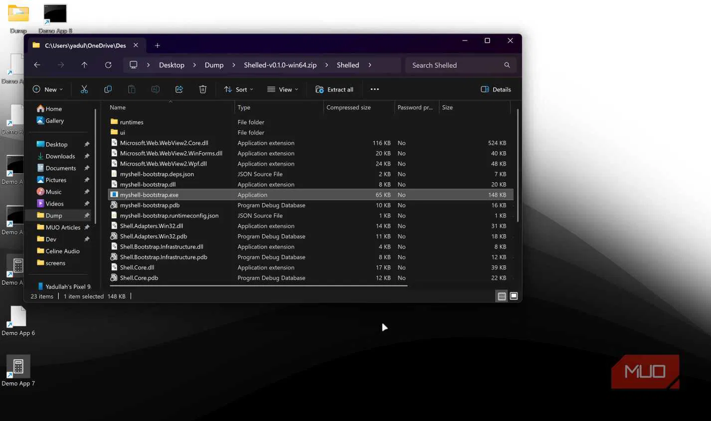 - Распакуйте загруженный ZIP-архив и убедитесь, что в папке присутствует файл myshell-bootstrap.exe.