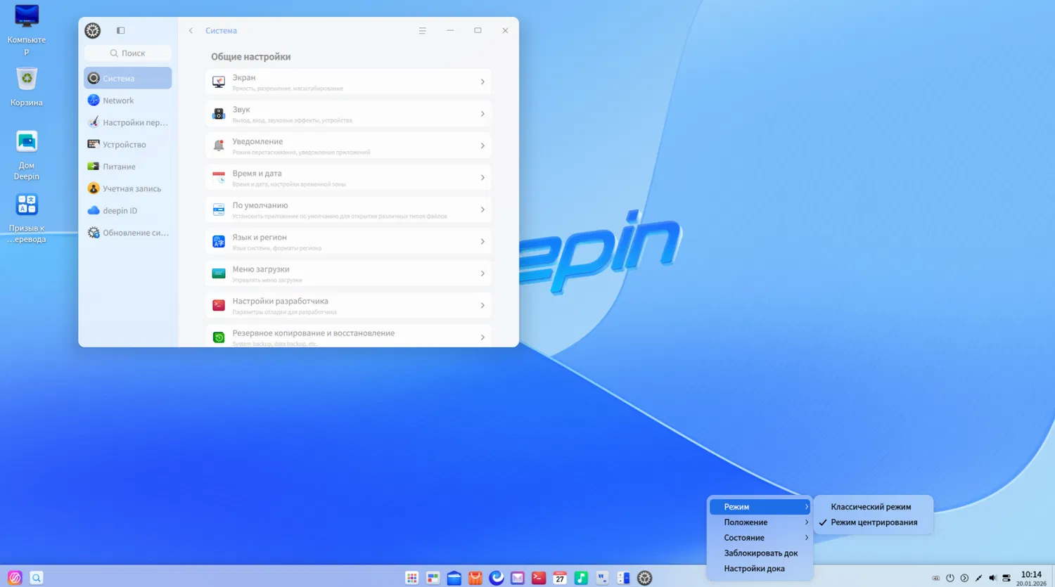 Разработчики уделили внимание деталям взаимодействия с интерфейсом DDE (Deepin Desktop Environment). Оптимизированы элементы панели задач, центра управления и экрана блокировки. В частности, скорректирована область клика по иконкам на панели задач для повышения точности запуска приложений.