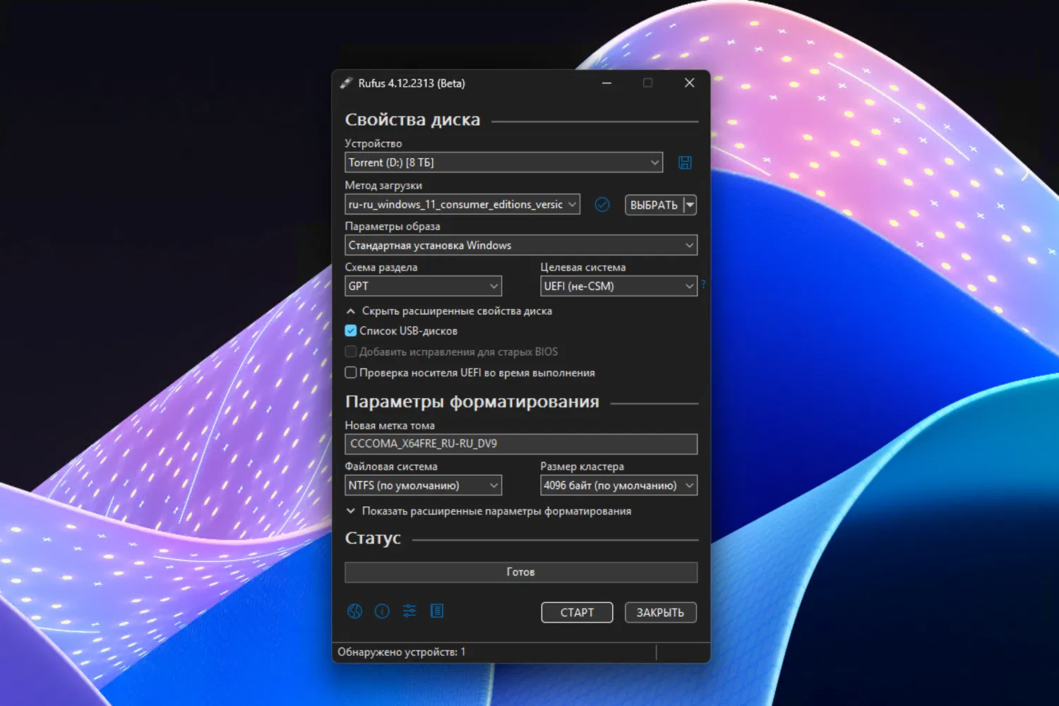 Что нового в Rufus 4.12 (BETA)