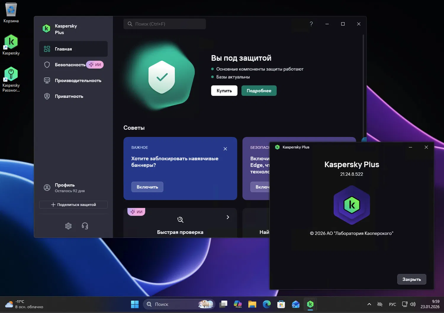 Компания «Лаборатория Касперского» выпустила обновление своего защитного решения Kaspersky для Windows — релиз MR24 (версия 21.24.8.522), доступный с 21 января 2026 года. Обновление распространяется для пользователей планов Kaspersky Standard, Plus и Premium и сосредоточено на усилении конфиденциальности, развитии ИИ-механизмов защиты и упрощении взаимодействия с лицензией и учётной записью.