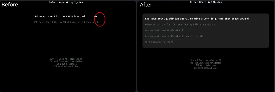 Также внесены исправления в тему оформления Breeze для загрузчика GRUB. В версии 6.7.0 устранена проблема, из-за которой длинные записи в меню загрузки обрезались, что затрудняло выбор нужной операционной системы или ядра при старте компьютера.