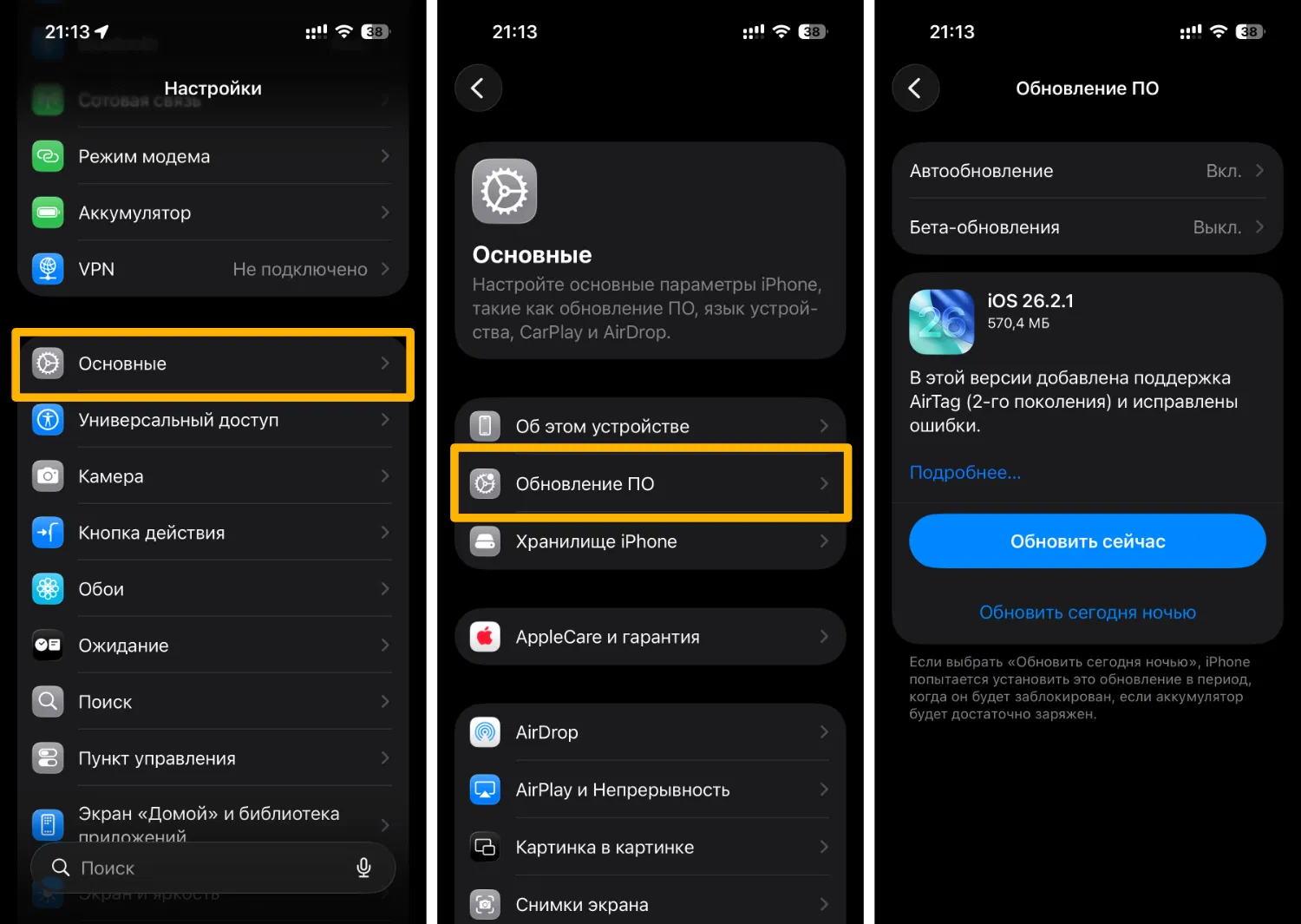 Обновление доступно для совместимых iPhone и iPad и распространяется по воздуху (OTA). Установить его можно через меню Настройки > Основные > Обновление ПО.