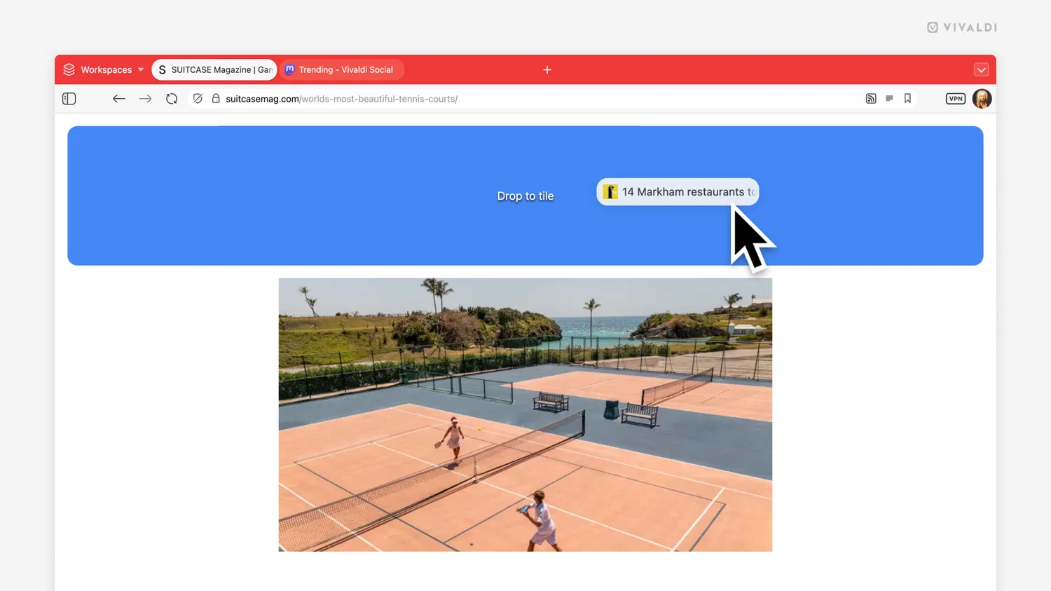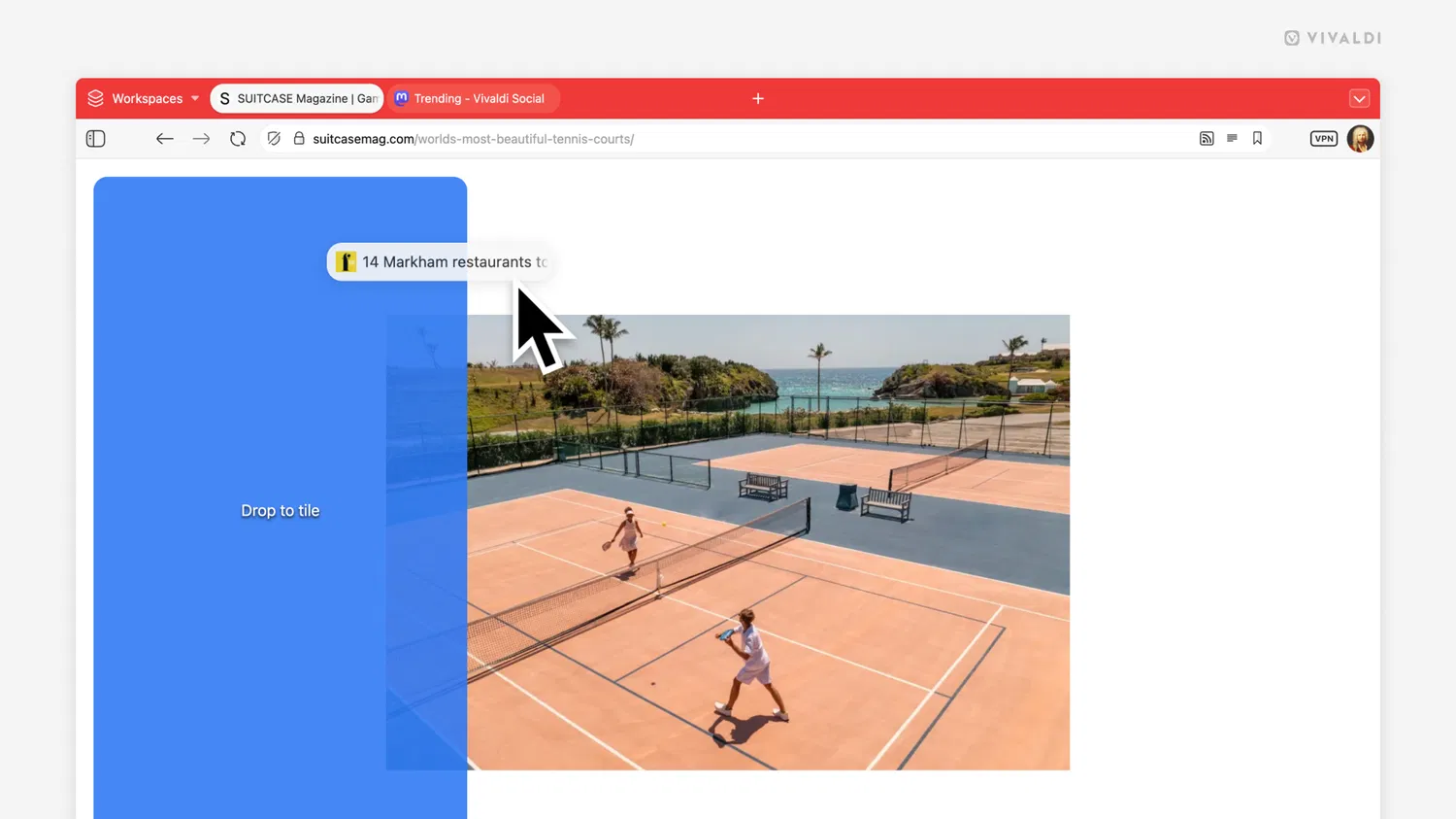 В Vivaldi 7.8 появилась возможность открывать ссылки сразу как размещенную вкладку. Это позволяет не ломать текущую компоновку: основная вкладка остается на месте, а новая страница появляется рядом.
