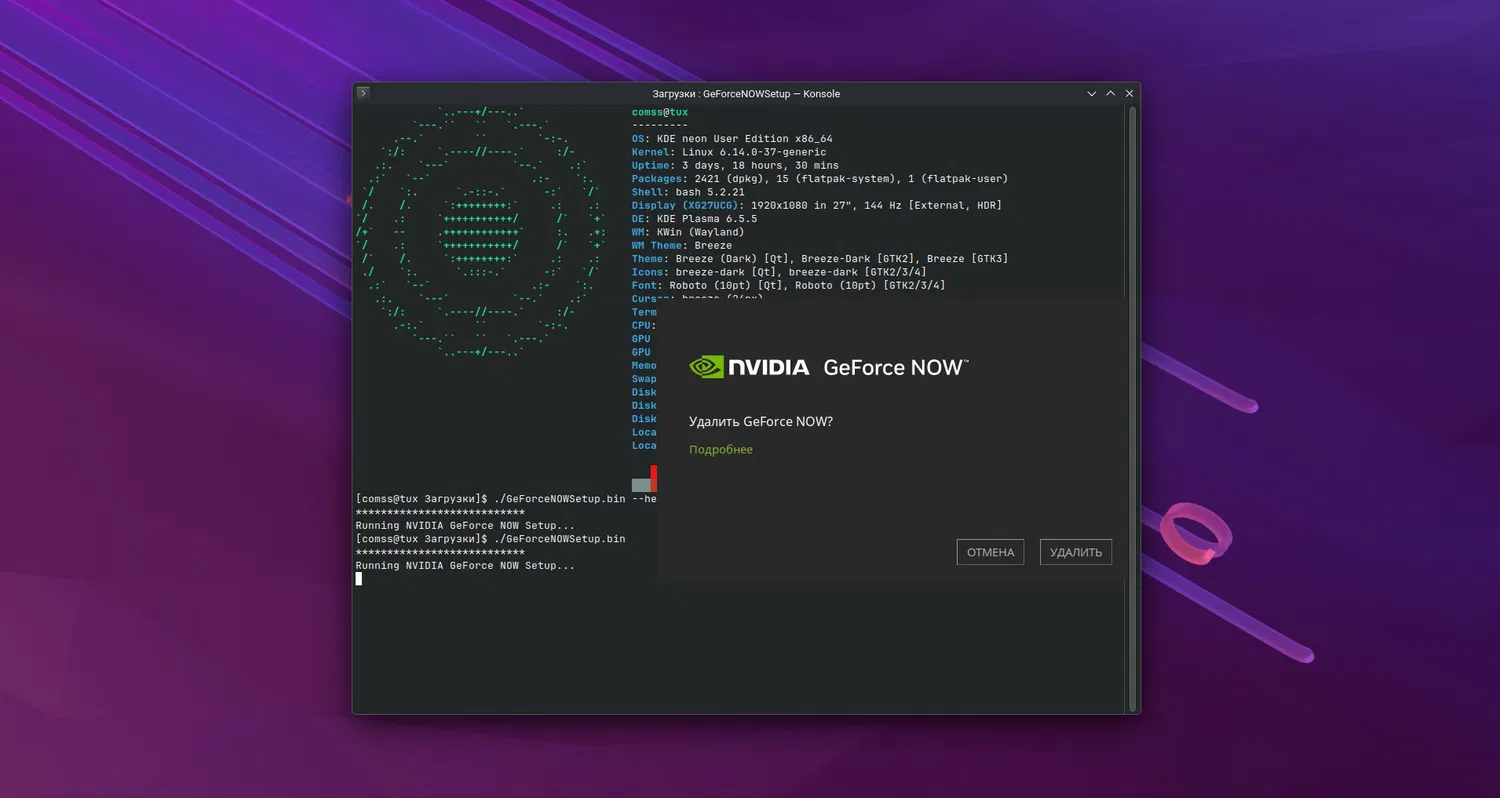 Для установки нативного клиента GeForce NOW в Linux выполните следующие шаги: