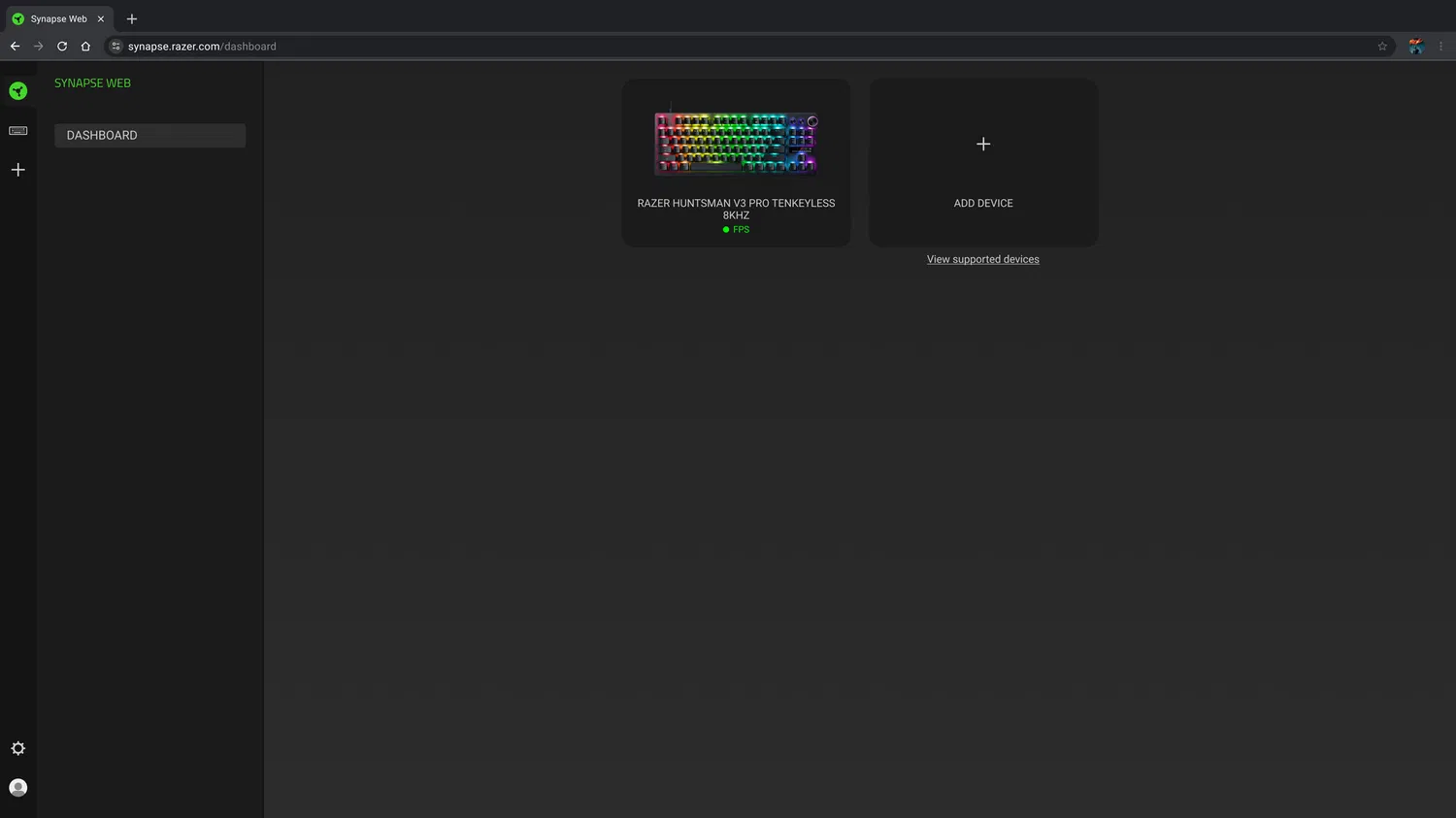 Razer Synapse Web работает в браузерах на базе Chromium, включая Google Chrome, Microsoft Edge и Opera. Это делает сервис удобным для турниров, LAN-мероприятий, а также для работы за чужими или корпоративными ПК, где установка настольного клиента Synapse невозможна или ограничена.