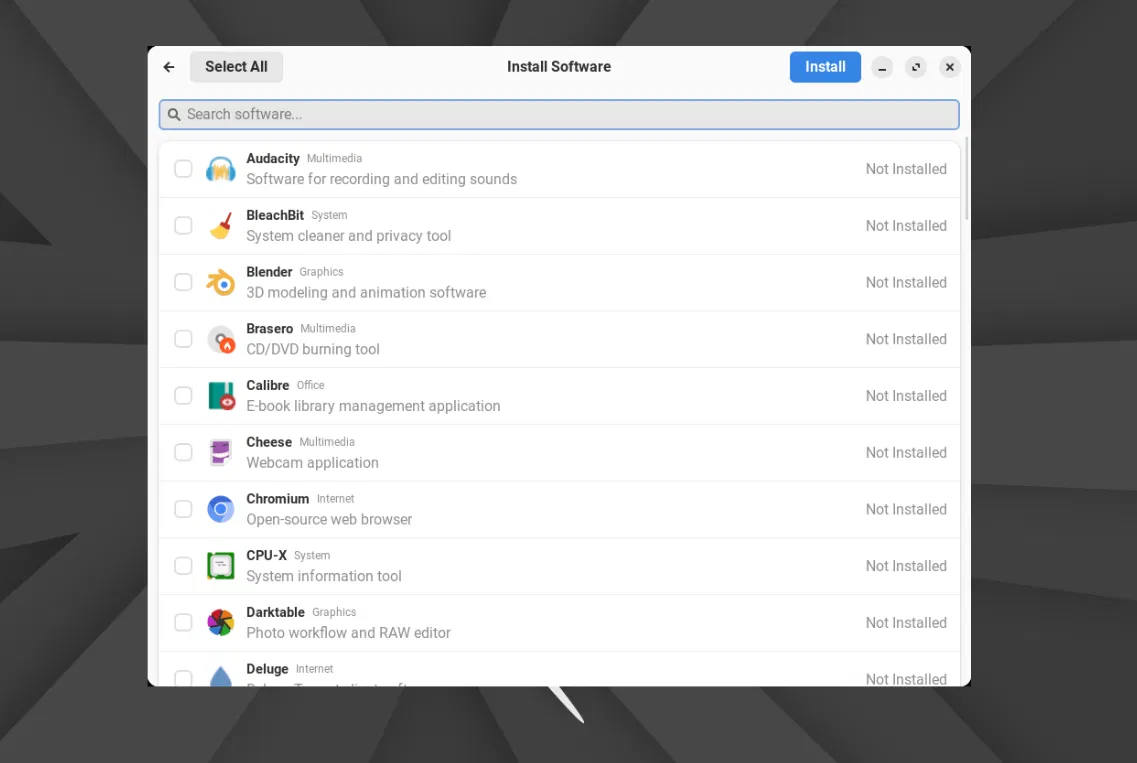 Наиболее значимые изменения коснулись утилиты Lite Software. В репозиторий добавлено более 20 популярных приложений, среди которых: инструмент для очистки системы BleachBit, фоторедактор Darktable, средство интеграции со смартфонами KDE Connect, видеоредактор Kdenlive и оптимизатор системы Stacer.