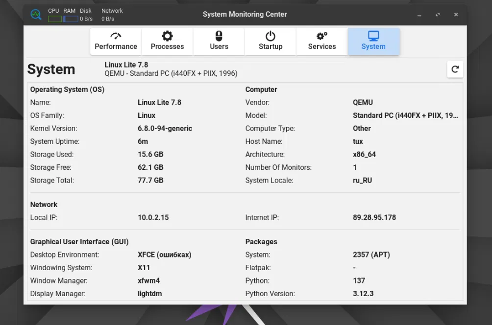 В утилиту System Monitoring Center (Системный монитор) внесены улучшения во вкладку System. Теперь она отображает более подробную информацию об оборудовании и состоянии ОС.
