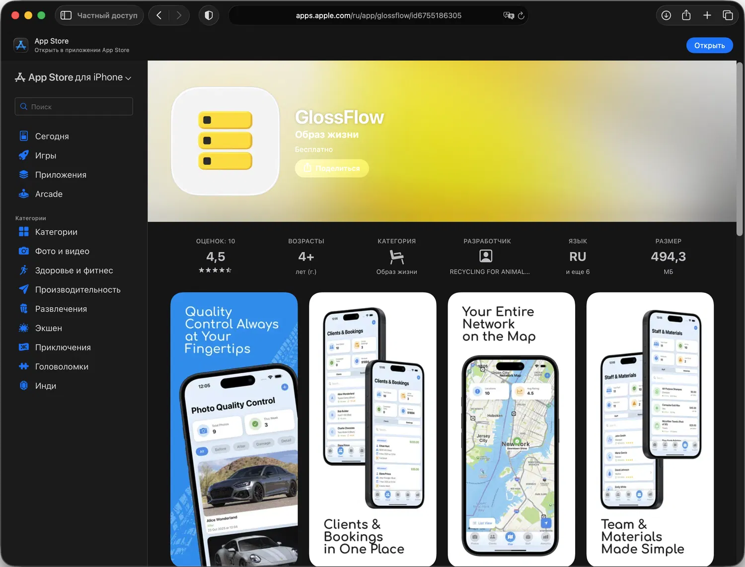 В App Store появилось очередное официальное приложение Т-Банка для iPhone. Новый клиент опубликован под названием «GlossFlow» и замаскирован под сервис для управления автомойкой. Как и предыдущие версии, приложение может быть удалено из магазина в любой момент.