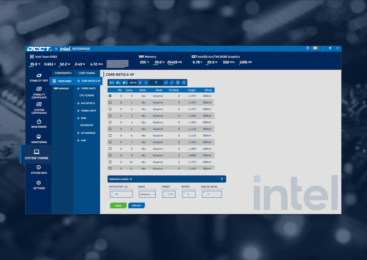 OCBASE и Intel работают над интеграцией управления настройками CPU прямо в OCCT