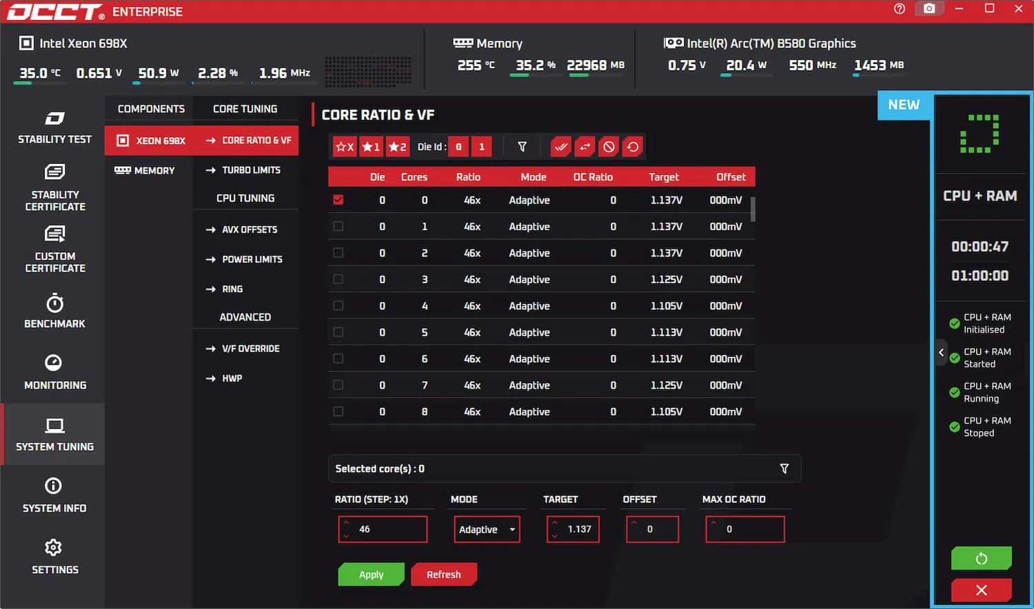 В будущих версиях OCCT должен появиться отдельный раздел System Tuning, где будут собраны ключевые параметры производительности. Пользователи смогут изменять частоты отдельных ядер и сразу переходить к стресс-тестированию, не покидая интерфейс программы.