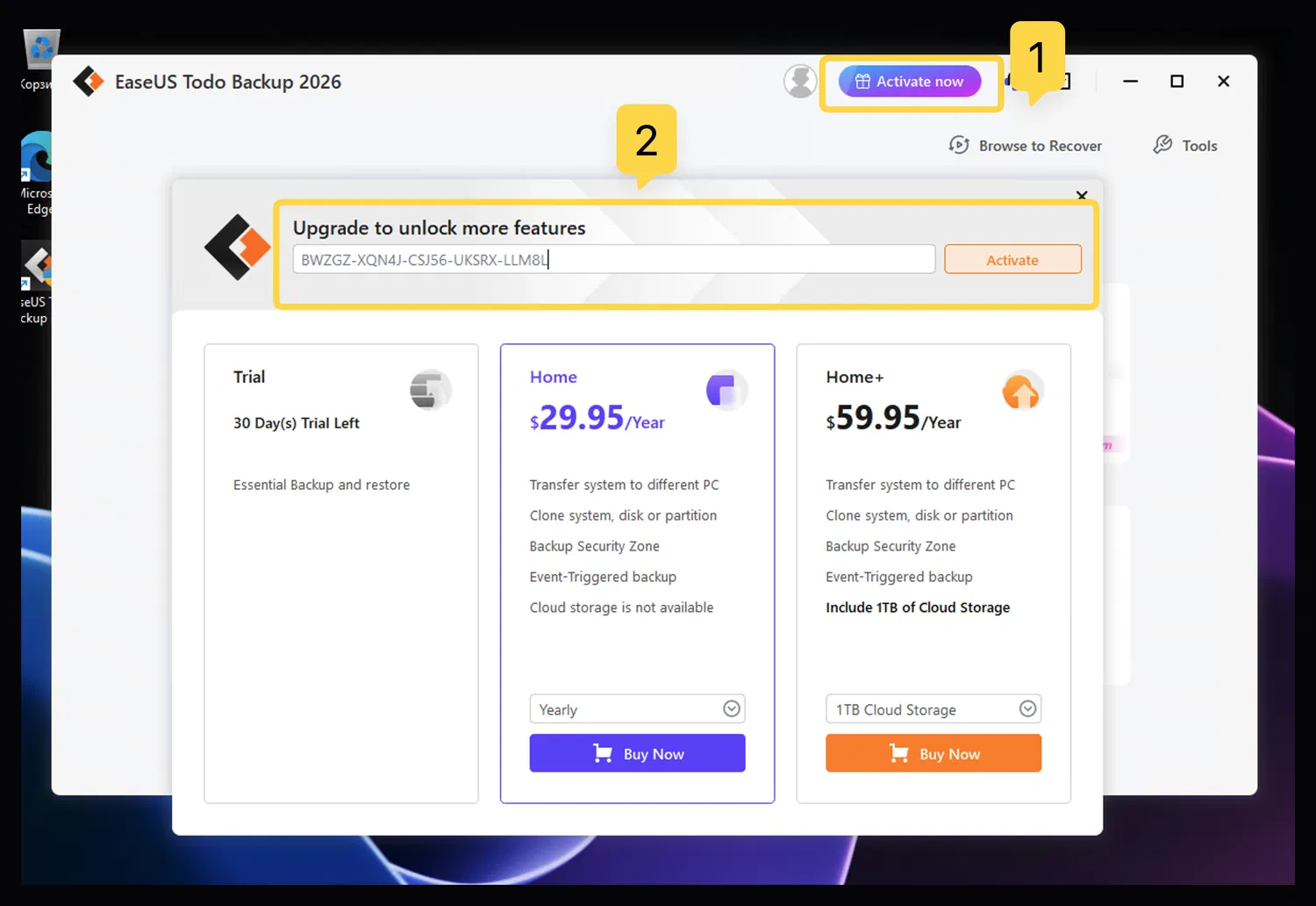- Вы получаете бесплатную лицензию EaseUS Todo Backup Home 2026 на 1 год на 1 ПК только для личного (некоммерческого) использования