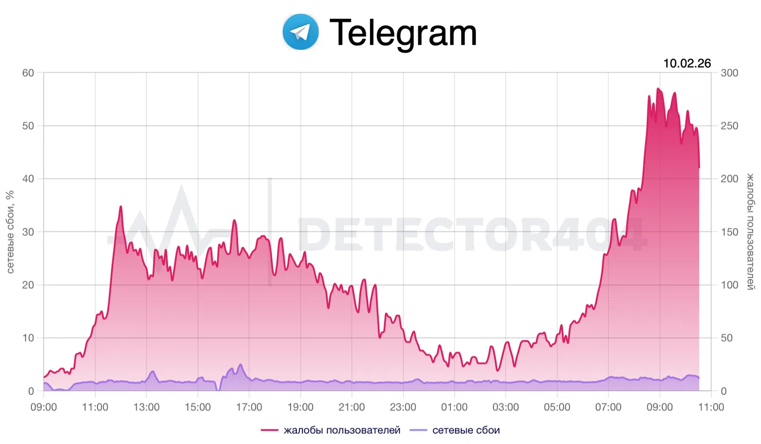 Массовые сообщения о неполадках начали поступать 9 февраля 2026 года и продолжаются 10 февраля. Основная часть обращений связана с медленной загрузкой изображений и видео, а также с трудностями при отправке файлов в чатах и каналах.