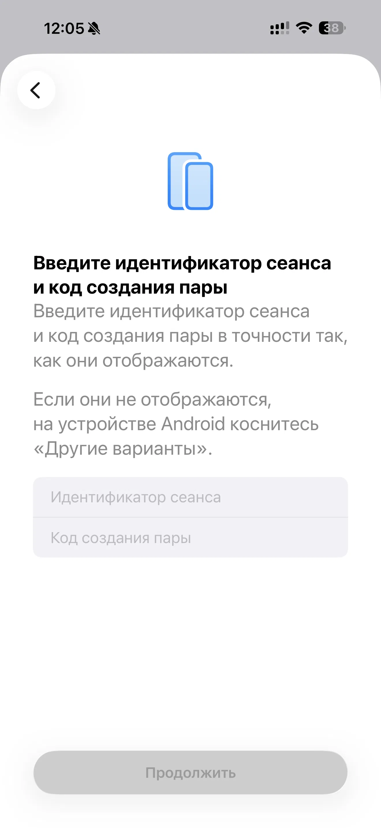 - отсканировать QR-код, отображаемый на Android-устройстве;
