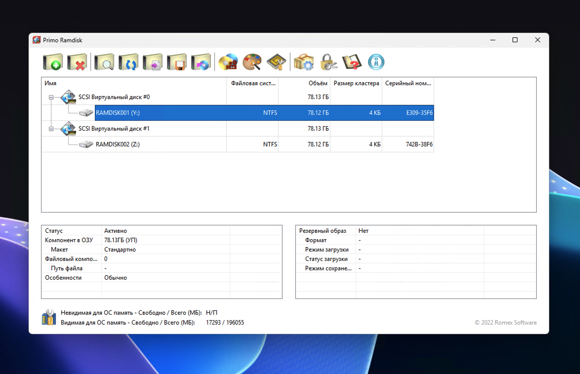 Ограниченный объём – вторая проблема. При 32 ГБ оперативной памяти после запуска Windows, браузера и нескольких приложений свободными остаются 8–12 ГБ. Выделить из них RAM-диск хотя бы на 4 ГБ – значит сократить доступную системе память, что может привести к активному использованию файла подкачки и замедлению всей системы. Практически создать полезный RAM-диск можно начиная с 64 ГБ оперативной памяти: в таком случае 8–16 ГБ можно безболезненно отдать под виртуальный том.